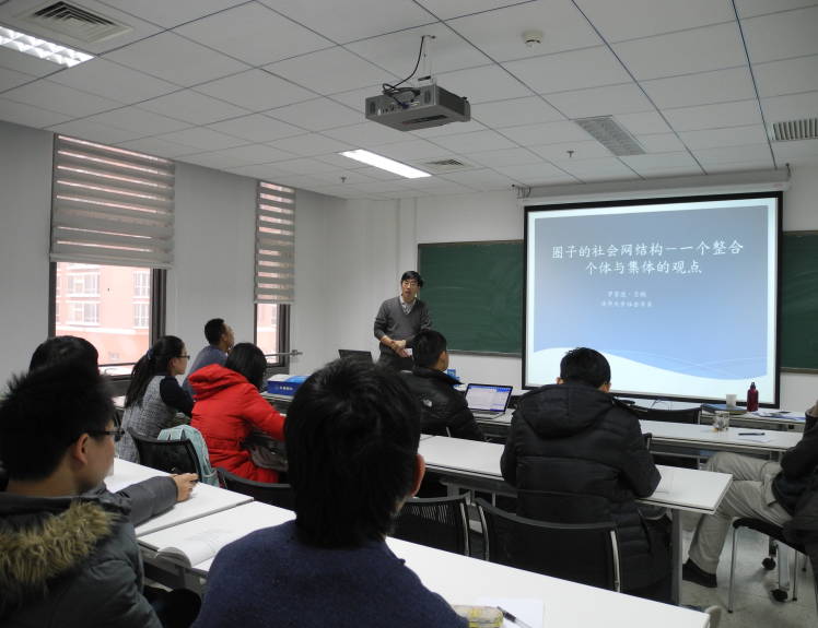 2014年12月9日下午,清华大学社会学系罗家德教授访问综合集成与知识科学小组。罗家德教授作了题为“圈子的社会网结构:一个整合个体与集体的观点”的报告,报告内容主要分析了中国风险投资领域的社会网结构,以及其社会网结构演化的规律。