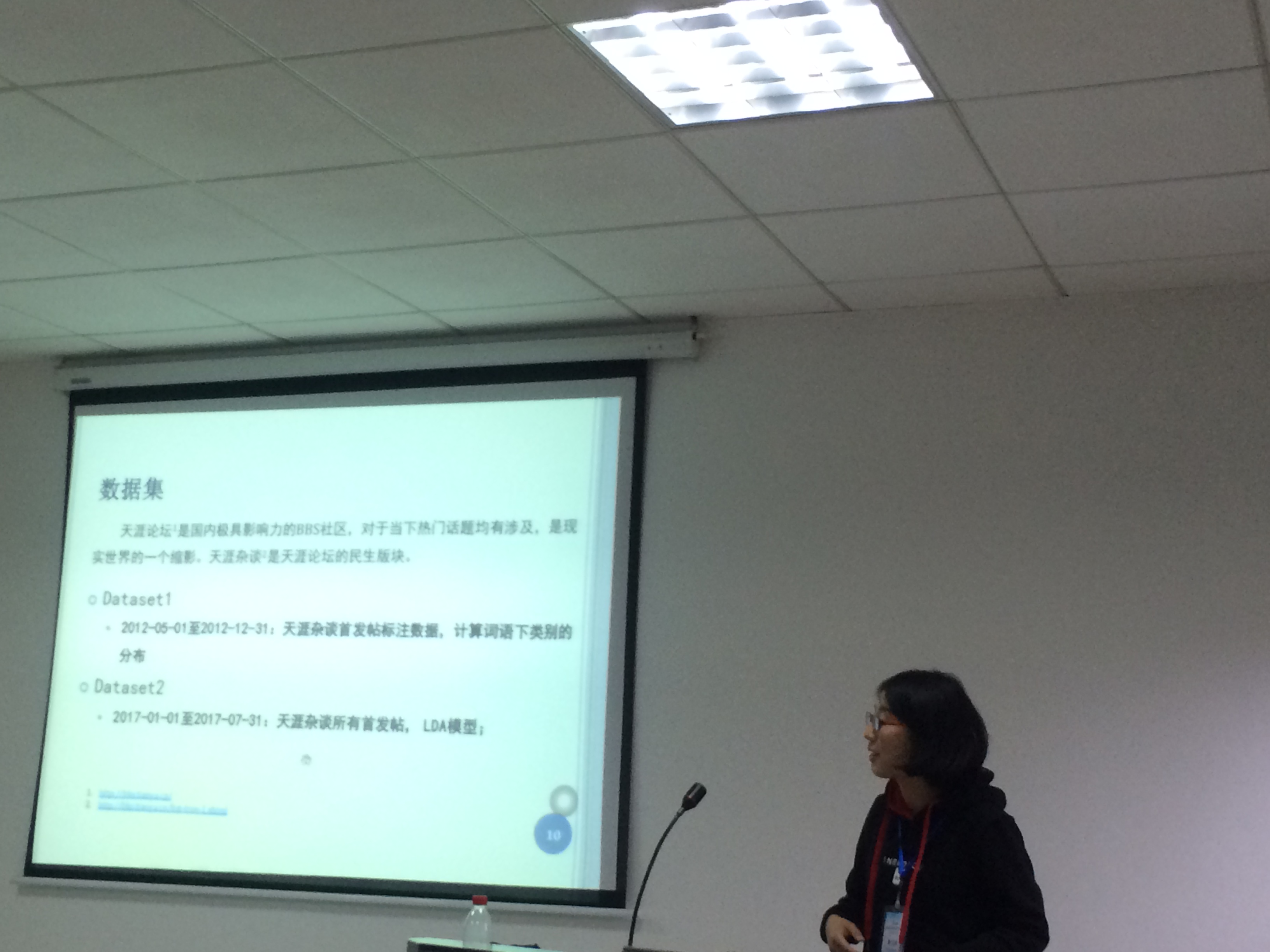 2017年11月17-18日两年一度的中国系统工程学会青年工作委员会主办的全国青年管理科学与系统科学学术会议在湖南长沙召开。本次为第14届由湖南大学工商管理学院承办,会议吸引了逾百名青年学者与会,综合集成与知识科学小组成员博士研究生许诺,硕士研究生贾玉改和郗强参加了此次会议。17日上午为开幕式和大会特邀报告,下午上半节为大会特邀报告,下半节进行分会场报告,综合集成小组成员参加了“数据挖掘与商务智能”分会场,包括8场报告,郗强、贾玉改和许诺同学依次宣讲“回乡见闻:基于网络空间的多视角分析”、“基于LDA模型的天涯BBS社会风险分析”和“基于热搜新闻词的社会风险事件要素提取研究”3个报告,展示了综合集成小组在网络舆情方面的最新研究,吸引了众多听众,提问踊跃。