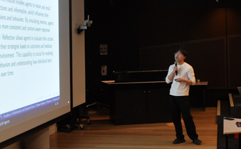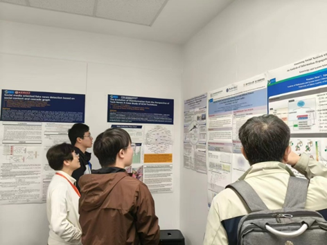 11月16日下午,在“Opinion Dynamics”分组中,已是南方科大博士后的黄晓辉博士汇报了题为”Analyzing Replies and Interactions of Users with Different Stances”的研究,硕士研究生郑文镇汇报了题为”Simulating Social Network Dynamics with LLM Agents: An Analysis of Information Propagation and Echo Chambers”的研究;现为山西财经大学讲师的闫志华博士线上宣讲了题为”Social Media Oriented Fake News Detection Based on Social Context and Cascade Graph”的研究,因时差问题,其报告从“Complex Networks and Modelling”分组调整到“Knowledge Technologies and Knowledge Management“分组。