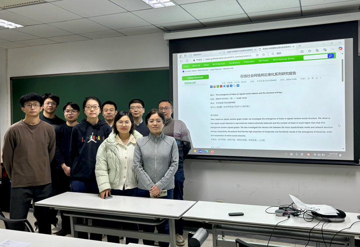 2024年12月9日下午,综合集成与知识科学研究组中国科学院数学与系统科学研究院南楼N402成功举办了主题为“在线社会网络舆论演化”的系列研究报告会。本次会议邀请了综合集成与知识科学研究组的三位毕业成员李振鹏(台州学院电子信息与工程学院)、闫志华(山西财经大学管理科学与工程学院)和陈进东(北京信息科技大学)与在组成员展开深入交流。