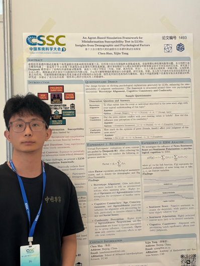 第九届中国系统科学大会(CSSC 2025)于2025年5月16日至18日在云南昆明举办。大会主题为“复杂性与智能化”,聚焦系统方法论、系统演化论、系统认知论、系统调控论、系统工程等前沿领域,吸引了众多专家学者参与。综合集成与知识科学小组的博士研究生韩晨同学的投稿“An Agent-Based Simulation Framework for Misinformation Susceptibility Test in LLMs: Insights from Demographic and Psychological Factors”被会议录用,于5月17日下午以张贴报告形式展示,就大模型代理仿真等前沿问题与参会人员进行讨论。现场参与本次大会的人员还包括小组毕业生台州学院的李振鹏教授和南方科技大学的黄晓辉博士后。会议期间韩晨同学积极旁听了感兴趣的报告,参与了墙报交流。会议期间,李振鹏教授参加了中国系统工程学会系统理论专业委员会的换届会议,并当选为新一届委员会委员。